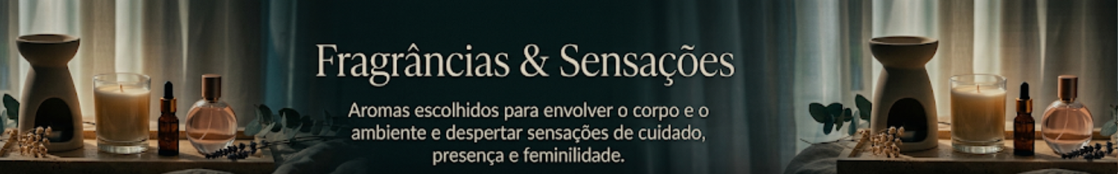 Fragrâncias que despertam memórias, acolhem emoções e transformam o ambiente em um refúgio de presença e bem-estar, cuidadosamente escolhidos para envolver o corpo, a casa e os sentimentos em uma atmosfera de cuidado e feminilidade.