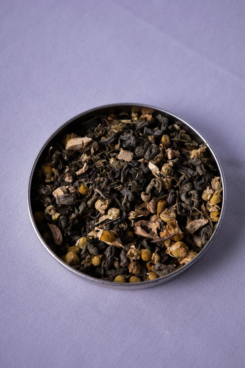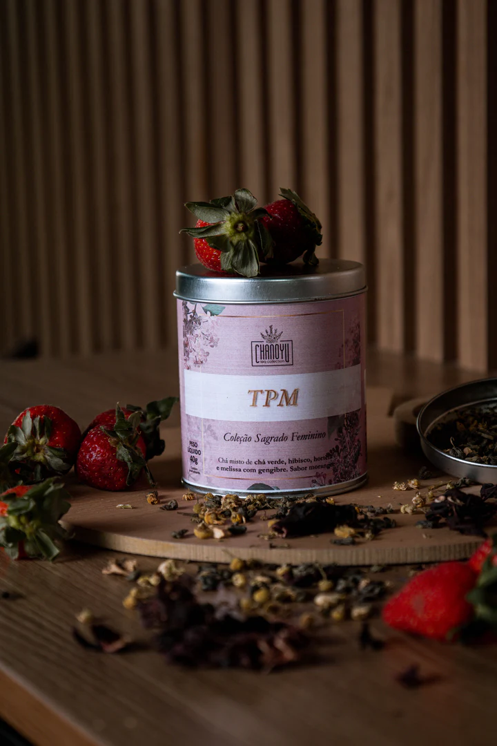 Blend funcional para TPM com chá verde, hibisco, hortelã, melissa e gengibre. Auxilia no equilíbrio emocional, conforto digestivo e sensação de leveza. Ideal para consumo nos dias que antecedem a menstruação.