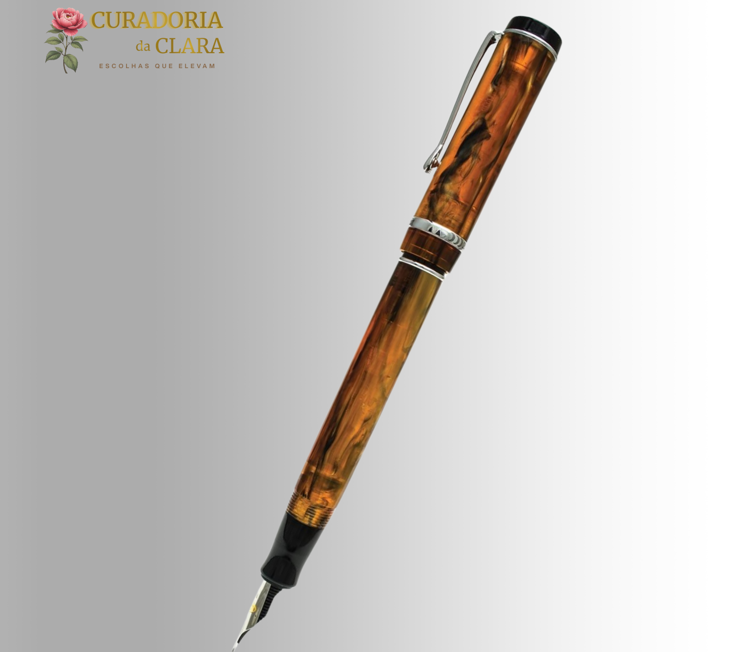 Com acabamento em tonalidade âmbar marcante e design clássico de topo plano, esta caneta representa um equilíbrio perfeito entre estética vintage e funcionalidade moderna. Seu corpo apresenta padrões detalhados que criam profundidade visual, tornando o instrumento não apenas uma ferramenta de escrita, mas também uma peça de coleção.