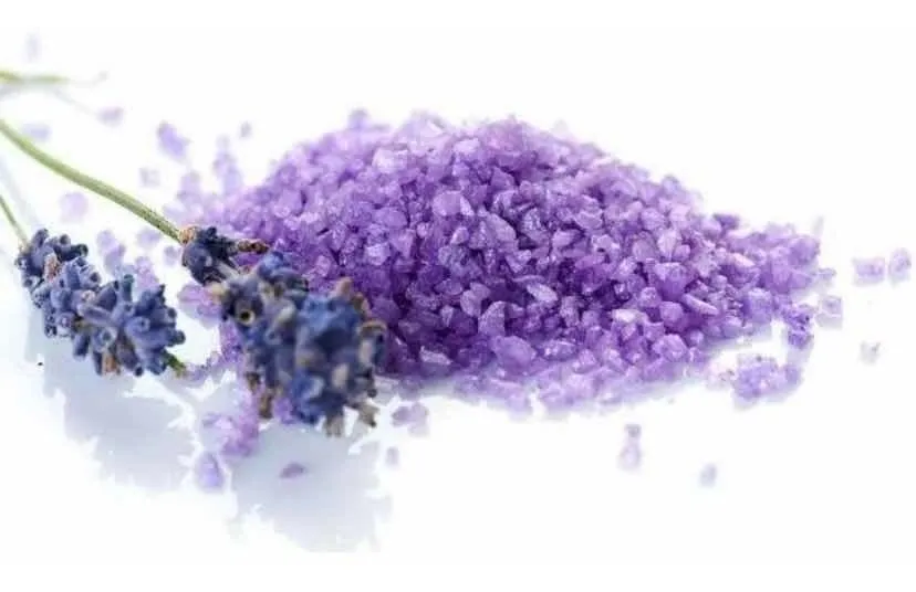 Material Sais minerais, fragrância de lavanda e extrato de camomila