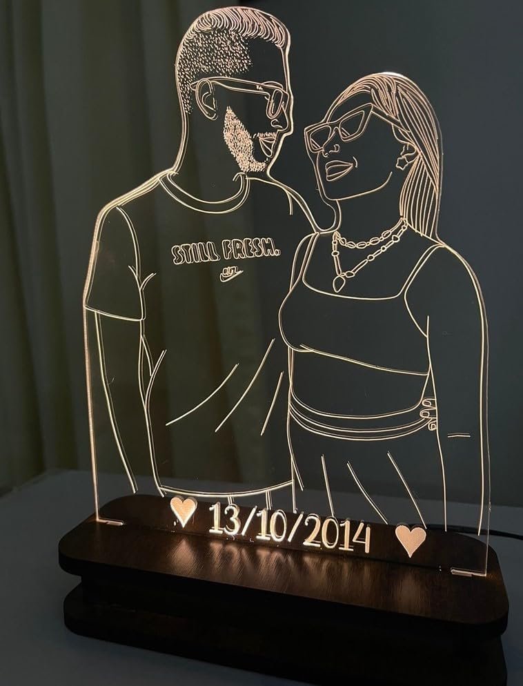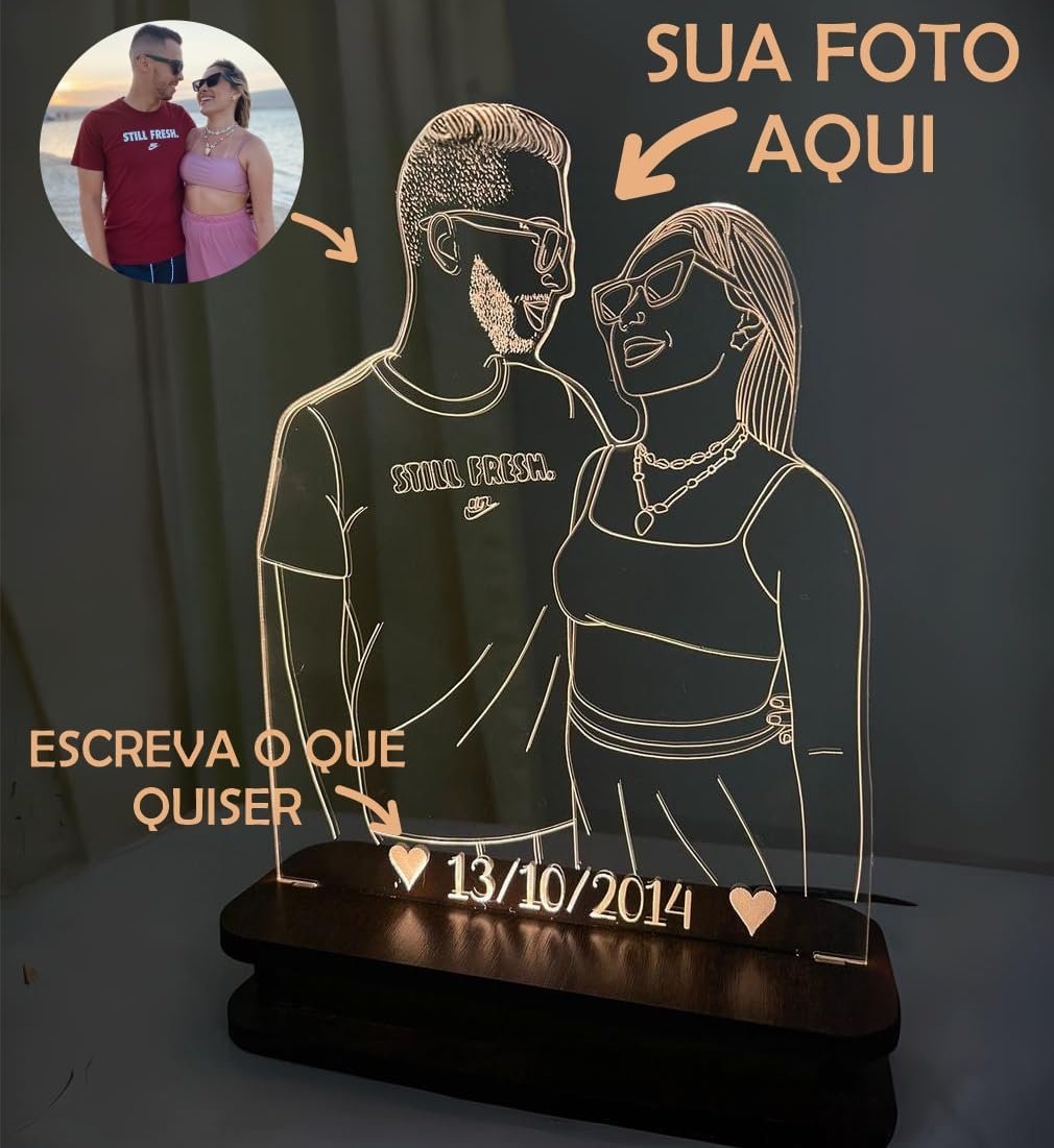 Luminária LED Personalizada com Foto de Casal Luz Quente